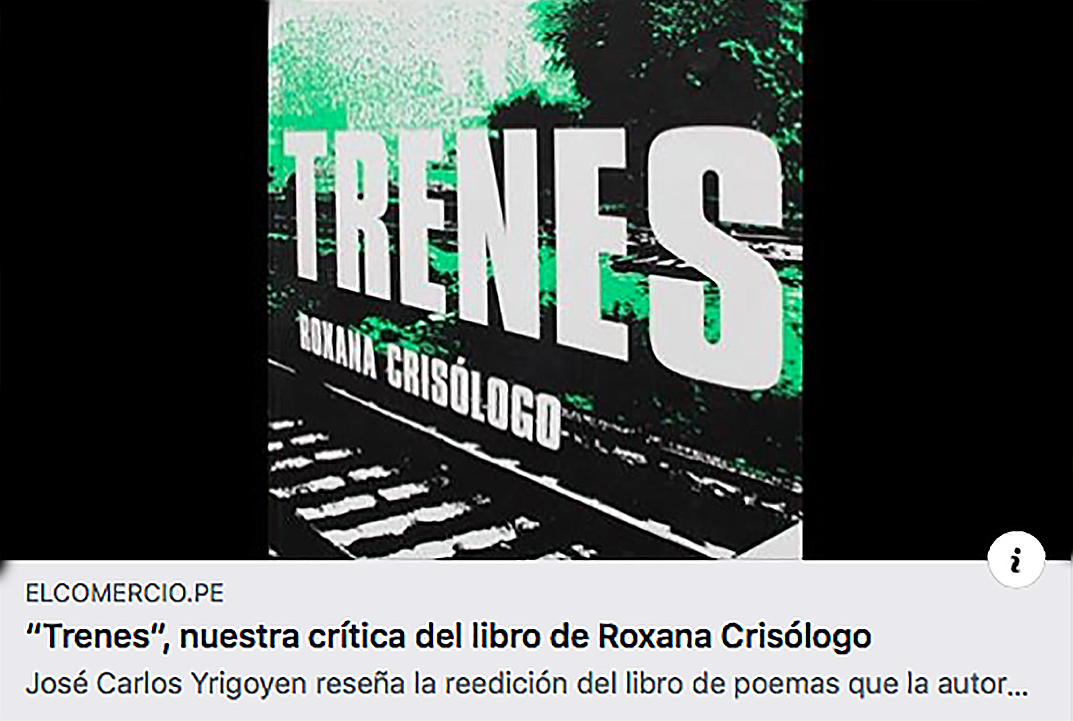 “Una extranjera viajando en tren a Moscú” es el extenso poema que inaugura “Trenes”. El periplo a través del continente se convierte en metáfora de su experiencia vital, de esa “sofisticada velocidad del color” (p. 13) que, en medio de la diversidad cultural, del florecimiento de “voces como dialectos/ afines al tacto” (p. 9), esconde un tenso conflicto, un panorama de “cementerio de fábricas/ reactores nucleares y flores/ disfrazados de pasto” (p. 16): la cara de una sociedad que aún no ha resuelto los retos que esta época le ha emplazado. La pericia y el talento de Crisólogo se transparentan en esta composición, narrativa y compuesta de múltiples escenas, que nunca resbala en lo prosaico o en lo fríamente enumerativo».