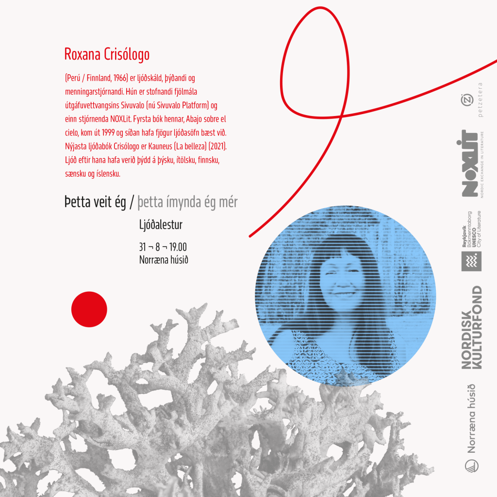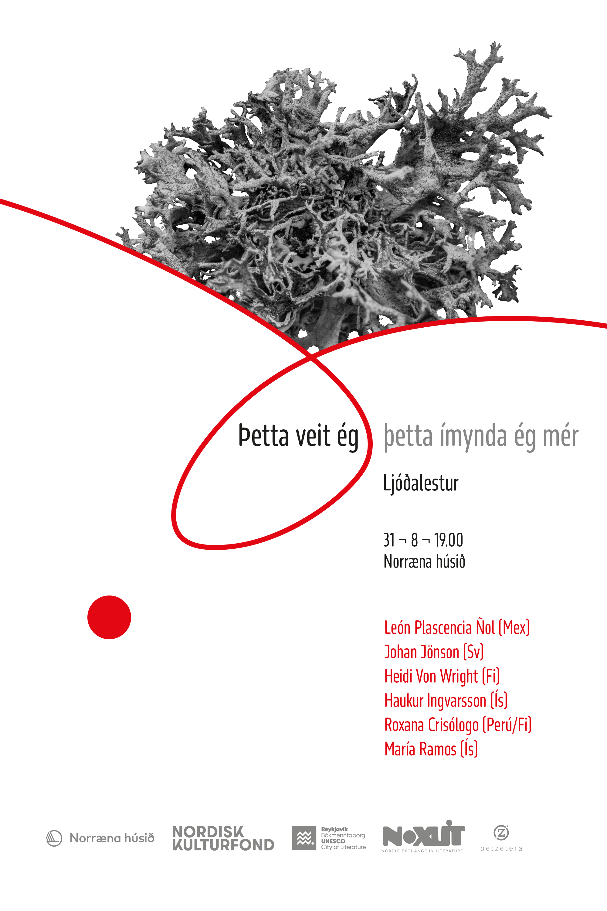 Participating Poets: Johan Jönson (Sweden) / León Plascencia Ñol (Mexico) | Heidi von Wright (Finland) / Haukur Ingvarsson (Iceland) | María Ramos (Iceland) and Roxana Crisólogo (Finland)