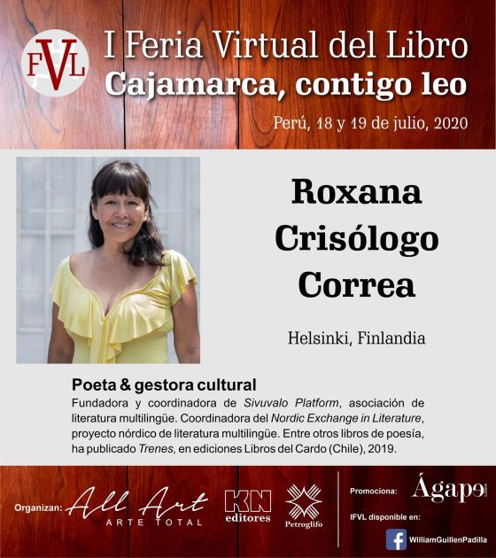 20.10.2020Vakiopaine – baari Jyväskylä, Suomi Lokakuun Runoklubi kutosella kutsuvieraana esiintyy Roxana Crisólogo espanjaksi (runoihin tulee myös suomennos). Roxanan jälkeen open mic. Riittävien … Más