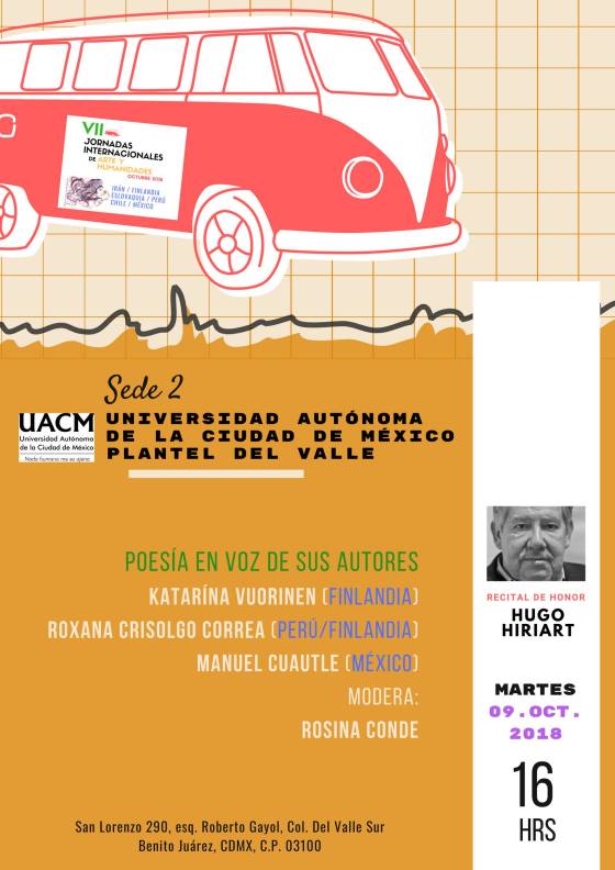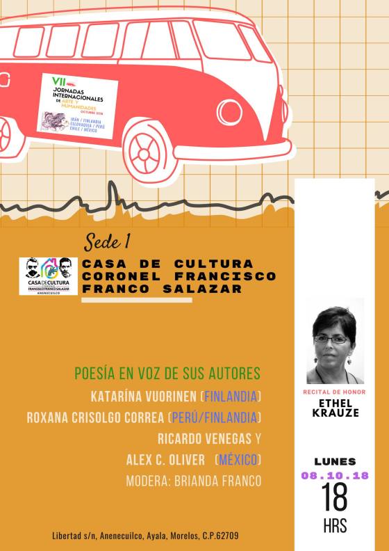 8 de octubre, 2018 18. 00 – 19:00 Casa de Cultura Coronel Francisco Franco Salazar. Morelos, México Lectura de poesía … Más